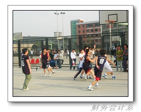 2007年4月12日下午4时20分,一场别开生面的篮球赛决赛在经贸的露天篮球场如火如荼地进行。此次篮球赛的参赛队员是一个亮点,他们分别是来自人文旅游系和财务会计系的团学部长。