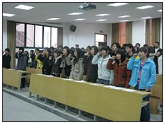 文明修身, 正己修德,学以致用, 全面发展。2月24日下午3:30,财务会计系文明督察小组誓师大会在1#105举行。全系各班班长,学习委员,团支书及两名督察员和纪检部全体成员准时到会。