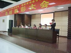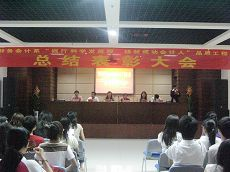 2009年6月17日星期三,财务会计系在学生活动中心召开 “践行科学发展观,铸就成功会计人”品质工程系列总结表彰大会。院长助理、系主任蒋丽君老师,学生处处长许兴苗老师,系党总支副书记王春青老师,系主任助理李国辉,张会莉老师,系办公室主任蒋国强老师,系团总支书记潘丽萍老师及系辅导员金莉莉、许菁老师等出席此次表彰大会。