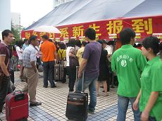 丹桂飘香、金风送爽的九月,带着金色收获和绿色梦想的莘莘学子踏上经贸这片热土,开始他们人生新的征程,为经贸注入青春的血液和活力。2009年9月15日是正式迎新的第一天,财务会计系所有工作人员和志愿者早早地到大本营等待新生的到来。经贸在不知不觉中变得热闹起来。一张张踏进校门的面孔,写满了好奇,新鲜与自信。