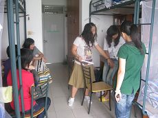 为整顿新生内务,优化09级新生的学习、生活环境,18日上午,财务会计系学生会生活部在新生寝室楼32幢和36幢组织开展了“共迎09新生 同创整洁寝室”的寝室内务整理活动,由上届的军训优秀学员,各示范寝室长及生活部成员对新生寝室进行指导。
