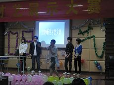 此次才艺展示大赛形式多样,内容丰富,各系同学积极参加,热情演出,活动中心人潮涌动,座无虚席。歌曲、戏剧、小品、魔术等12个节目表演轮番登场。台上选手卖力的演出博来观众的阵阵掌声,我系同学参加的小品《应聘》、《天堂地狱大比拼》凭其大胆前卫的台词,夸张到位的表演,更是将比赛推向一个又一个高潮,台下掌声迭起。我系和国贸系同学联合演出的歌曲串烧《听是谁在唱歌》压轴登场,并获得优胜奖。
