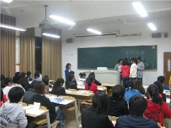 为深化学院学风建设,推进我系的目标教育,促进学生更好地确立人生目标,2010年11月8日18时,我系大一保险、税务、信管专业,在学院的统一部署下,系党总支的指导下率先开展以“导航引领 共话学风”为主题的班会,评委由各班班助和学生会各部长副部长组成。系党总支副书记王春青、系辅导员夏欢和张译尹观看此次班会,对各班班会的节目予以表扬。