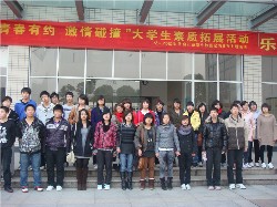 以新生的到来所营造的积极、团结、凝聚的气氛为契机,以趣味项目活动为载体,2010年12月9日下午3点,由财务会计系素拓部主办,青年志愿者协会、体育部、文艺部协办的大学生素质拓展活动之校园定向寻宝主题活动在体育馆门口准时开始。