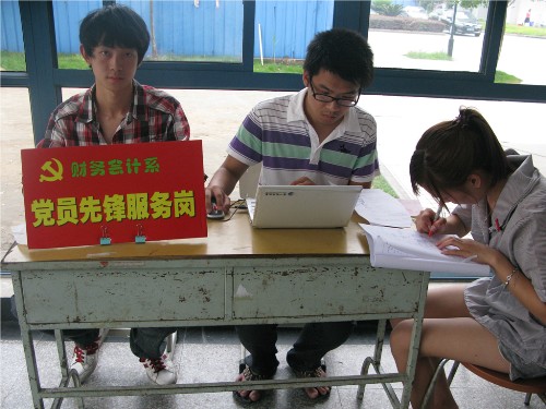 为切实做好毕业生离校前的各项教育、管理、服务工作,更好的发挥毕业生党员的先锋模范作用,积极响应文明离校公约,让毕业生感受到学校大家庭的温暖。财务会计系组织毕业生党员,于毕业生返校期间分别在33幢公寓和38幢公寓下设立“毕业生党员文明离校服务岗”, 服务岗采用设岗值班的形式,