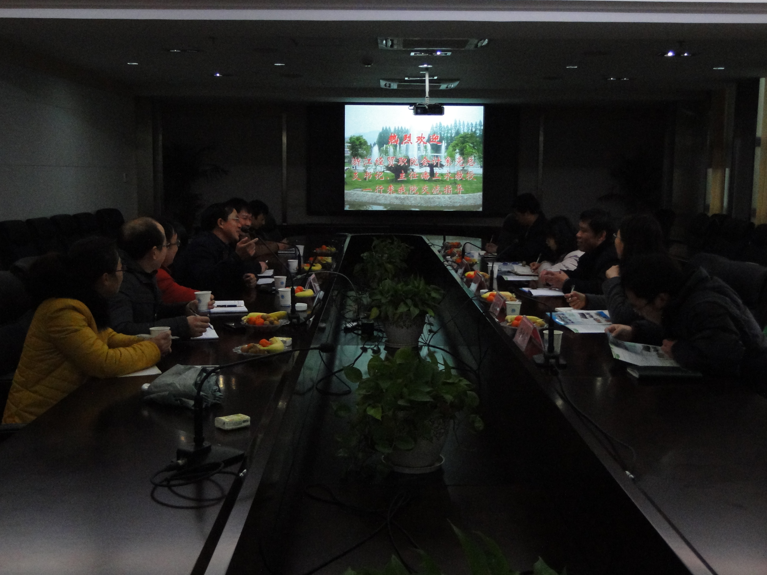 2日上午,丽水职业技术学院梁伟样院长一行热情接待了我们。梁院长历时两个小时,向我们详细介绍了会计专业的建设情况与国家教学资源库的建设情况。在专业建设方面,梁院长以“先导-逻辑起点-核心-关键-基础-保障”为逻辑主线,分析了会计专业的教育理念、培养目标、课程体系、师资队伍、实践条件与运行机制。在国家教学资源库的建设方面,梁院长以《税费计算与申报》课程为例,说明了教学资源库建设的过程、建设的内容及如何使用教学资源库。梁院长的报告给予我们很大启发,使我们受益匪浅。之后,财贸管理学院院长及书记分别向我们介绍了省级竞赛的组织、学生“爱心教育”等方面的做法。