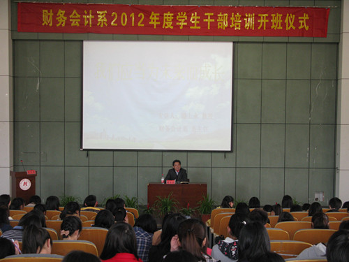 2012年3月27日下午,财务会计系系主任潘上永教授以“我们应当为未来而成长”为主题为学生干部培训班打响第一枪。