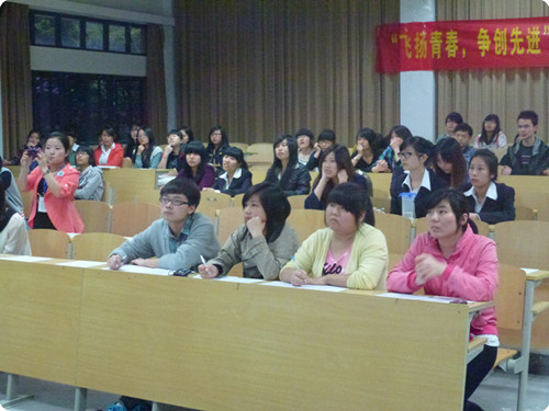2012年4月15日晚上六点三十分,在1号教学楼101教室举行了“飞扬青春,争创先进”财务会计系先进团总支答辩会。参加本次答辩会的评委有:财务会计系总辅导员夏欢老师,辅导员张译尹老师和我系团学各部长。