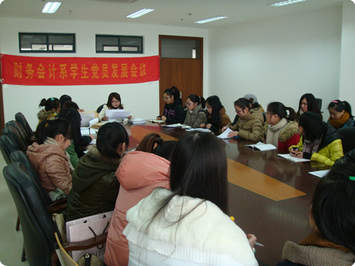 2012年12月25日下午1时,财务会计系学生党员发展会议在图书馆八楼会议室举行。此次会议由财务会计系学生党支部书记陈琴老师主持,共有6名正式党员、2名预备党员和23名发展对象参加。