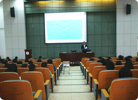 2013年4月22日下午3点10分,我系于图书馆报告大厅开展以“十八大报告学习”为主题的形势与政策教育系列讲座,系主任潘上永教授担任主讲人。系党总支副书记王春青;系团总支书记兼总辅导员夏欢,辅导员陈琴、许菁、张译尹、周全六位老师和12级学生到场聆听。