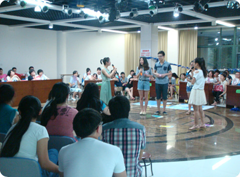 在一支活力四射的开场舞中,本次决赛的序幕正式拉开。首先由两位主持人介绍了参赛的八支队伍和比赛规则,活动共分三轮,环环相扣,现场气氛异常活跃。第一轮的游戏名为“心有灵犀”,各队两两一组,在同伴的提示中猜出正确的答案,十足的默契迎来现场阵阵掌声。接着进行的第二轮游戏“非常了得”更是将同学们的热情挥洒得淋漓尽致。比赛进入到最后的“风险投资”,每组按前两轮排名挑战不同分值的题目,在经过三轮答题后,很多落后的队伍成功实现逆袭。最终33栋215寝室以一首别出心裁的歌曲串烧将比赛推向尾声。