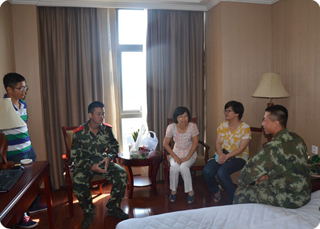 2013年9月18日,财务会计系党总支副书记王春青老师、系团总支书记兼总辅导员夏欢老师、辅导员张译尹老师和张刚老师携班助们走进二营教官宿舍看望慰问教官。