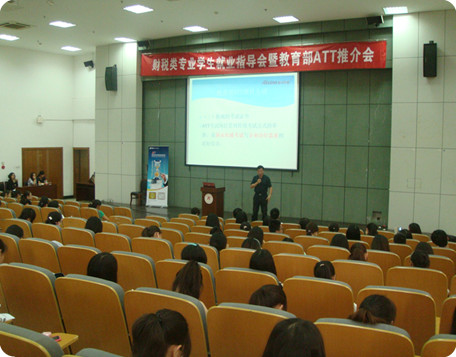 2013年9月24日下午2点,财税类专业学生就业指导会暨教育部ATT推介会在图书馆报告大厅举行,系副主任李国辉老师、辅导员陈琴老师和11级、12级各班的学生参加了本次推介会。