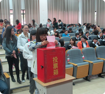 在各位候选人演讲结束后,206位学生代表开始投票选举。本次大会共发放206张选票,收回203张。经过漫长而紧张的唱票计票,财务会计系团总支第八届学生第十届委员名单出炉,他们分别是曹佳、 陈雅红、陈玉叶、戴振凯、高丽萍、黄丽丽、季奕虹、庞梦人、施淳亚、陶航绮、吴秋杭、王麒凯、叶晨蕾、叶玲玲、岳维超、张北京、周佳炎、周倩、周怡茜。