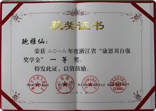 鲍雅仙,学院一等奖学金、国家励志奖学金、浙农阳光二等奖学金和三好学生,通过自身的不懈努力,她将以上的各项荣誉与自己紧密联系在一起,其中有付出有收获,她说,她始终都记得——上帝在关了你的一扇门的同时,也为你打开了一扇窗,就在于如何将那扇窗的作用发挥到最大化。
