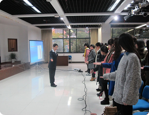 讲座中,胡教授从学生干部个人形象、社会交往礼仪两个方面出发详细阐述了各个场所礼仪的具体表现,注意点及其重要性,并且亲自演示社交礼仪的具体细节。在同学们有了些了解之后,胡教授还邀请了不少的同学上台示范,并指出不足之处,借以加深同学理解和消化。胡教授最后用“礼仪展现细节,细节展现素质的叮嘱”结束了此次培训,同学们则报以热烈的掌声答谢。