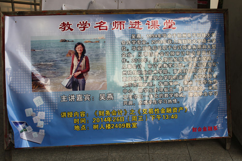 吴燕老师为该校财会金融系的师生开展公开课教学,讲授《财务会计实务》课程的交易性金融资产章节。前后90分钟的课堂教学,吴燕老师由浅入深,不断激发学生课堂热情,以引人入胜的案例故事,精美的PPT课件,把整堂课上的精彩纷呈,赢得了热烈的掌声,充分展示了我院教师风采。