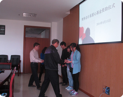 财务会计系爱心基金设立于2005年,基金设立的初衷旨在缓解贫困生的经济压力,第一笔资金3000元来源于财务会计系师生的捐款。“送人玫瑰,手有余香”,9年来通过开展义卖活动、募捐等公益活动,使得爱心基金的规模越来越大。为了提高基金的增长速度,财务会计系教师利用投资理财专业的优势,为基金寻找低风险的投资理财机会,近5年来,基金增速可观,以年8%以上的速度增长,截止目前,爱心基金已累计近8万元。为保障基金的有序管理,现已制定《财务会计系爱心基金管理办法》,成立了爱心基金管理委员会,今后将以永续年金的形式每年定期提取基金的利息收益,源源不断资助有需要的学生。