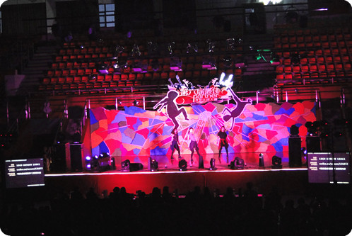 4月23日晚6点30分,偌大的体育馆内座无虚席,随着人文旅游系的三位表演嘉宾和三位晚会男主持带来的一段开场热舞,一曲以“梦想”、“青春”命名的狂想曲正式奏响了。随后,在现场观众此起彼伏的掌声中10支队伍依次上台,带来了精彩绝伦的才艺表演。由Beginning组合带来的小品《皇帝与刺客》以其风趣幽默的语言和独特的故事内容引来了台下观众阵阵笑声。紧随其后出场的Ending组合带来的舞蹈串烧《Wolf》更是将全场的气氛推向了高潮,让全场观众都沉醉在了舞蹈和音乐的海洋之中,随之欢呼、舞动。《Russian roulette》、《What is you name》、《跳的不是很好》等火爆、热辣的舞蹈,同样博得了现场观众热烈的掌声和欢呼声。歌曲《如果没有你》、《小情歌》、《Singer guys》同样唱出了大学生的青春风采,让台下观众为之动容,随之和唱,产生共鸣。精彩的节目、丰厚的奖品,持续的掌声与欢呼声汇聚出最为欢乐的氛围,笼罩在体育馆的上空。