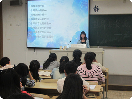 各班主讲人主要从介绍母亲节起源、讲述节日特色、歌颂母爱之词、播放感恩母亲的音频、讲诉与母亲的故事等方式来开展。《烛光里的妈妈》、《懂你》等歌颂母亲的经典歌曲,《妈妈再爱我一次》、《母女情深》等关于母爱的经典电影让学生感恩母亲对自己无私的付出。