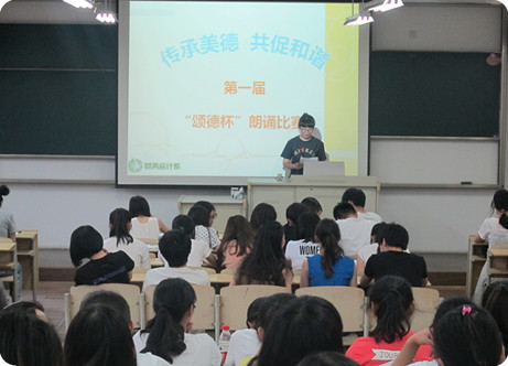 2014年5月27日晚上6点半,我系在2号楼405教室举行了第一届“颂德杯”朗诵比赛。系辅导员张刚老师、团学各副部出席了本次比赛。