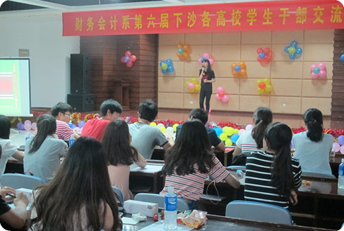 2014年6月9日晚六点整,下沙各高校学生干部齐聚在我校学生活动中心参加由我系对外联络中心主办的第六届下沙各高校学生干部交流会。此次交流会以“We are here just for you”为主题,中国计量学院、浙江财经大学、浙江金融职业技术学院、浙江水利水电学院、杭州职业技术学院、浙江警官职业学院、浙江经贸职业技术学院等下沙七所高校的学生会主席代表出席此次交流会。