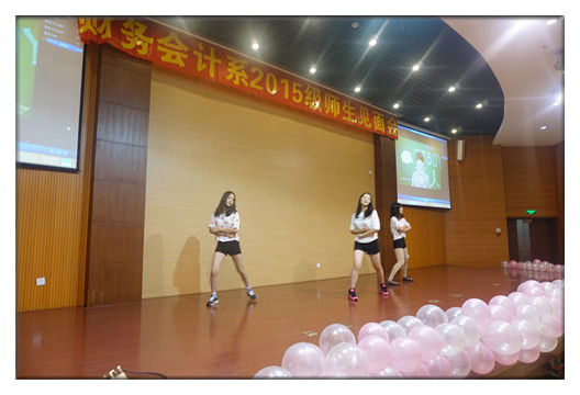 用时下最流行的tfboys的《青春修炼册》作为开场曲:“跟着我左手,右手一个慢动作...”熟悉的旋律在会场响起,同学们的热情瞬间被点燃,伴着青春洋溢的舞蹈起立齐唱——这里就是财务会计系2015级师生见面会暨《学生手册》知识竞赛的现场。出席本次见面会的老师有系领导、系办公室老师、辅导员老师、2015级各班班主任以及全体15级新生,见面会由黄丽萍老师主持。
