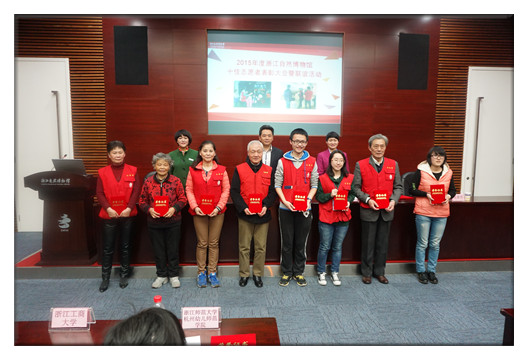 2016年3月5日下午一点半,在浙江省自然博物馆科普教室举行了“2015年度浙江自然博物馆十佳志愿者表彰大会暨联谊活动”。浙江省自然博物馆副馆长严洪明出席了本次会议,浙江经贸职业技术学院、浙江计量学院、浙江传媒等高校的志愿者代表们参加了此次活动。
