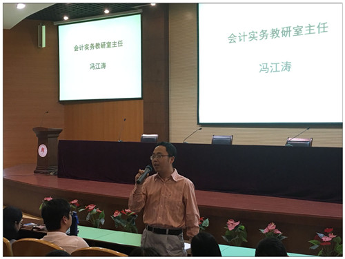 系党总支副书记朱颖老师向大家介绍,财务会计系充满了“财”气和“才”气,我系有优秀的师资、宽广的平台,同学们可以在这里充分展示自己的才能。随后,各教研室主任一一为大家送上寄语。