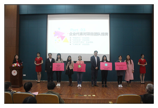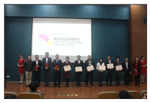 系主任潘上永代表系部发言,他说,在新的时代背景中,会计专业面临着转型升级,而创新创业则为大家抓住机遇提供了良好的思路和契机。仪式上,企业代表们为创业班酝酿已久的“熊猫有礼”、“财经在线”、“古玛空气净化”和“红袖女装”等四个校企合作创业团队进行授牌,财务会计系为创业导师们颁发了聘书,浙江古玛环境科技有限公司董事长朱闻杰代表企业方致辞。随后,招生就业处处长顾鸣镝寄语我系第一届创业班,他肯定了校企协同合作的创新创业模式,希望学员们能珍惜机会,在明年的创新创业大赛上取得佳绩。