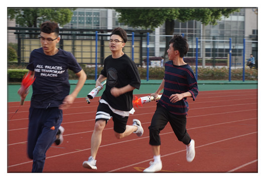 每个小组要按照顺序一次完成女子4×100米、男子2×400米、女子2×200米项目,最终到达终点的小组为胜。比赛时,在裁判的起跑声响后,第一棒同学都竭尽全力跑向下一棒,而接下来的每一棒同学都目不转睛地等待火炬的到来。随着时间流逝,竞争越发激烈,但当会计167班的谢云霄同学遇到小状况、不小心摔倒时,他都没有放弃,仍然奋力跑向终点,赢得了大家的掌声。跑道上,每位同学都挥洒出顽强拼搏的汗水;赛场下,拉拉队的加油声更是此起彼伏,为选手们呐喊助威。