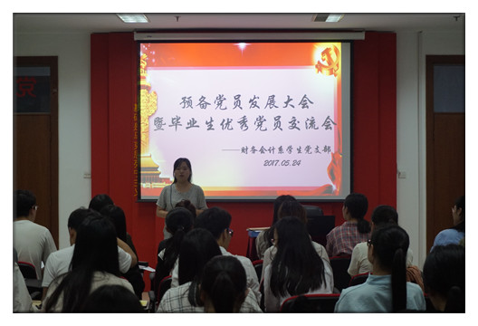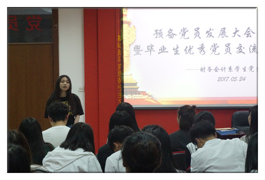 5月24日晚6:00在图书馆8楼系党员之家举行预备党员发展大会暨毕业生优秀党员交流会。会议由系辅导员严晓莉老师主持。