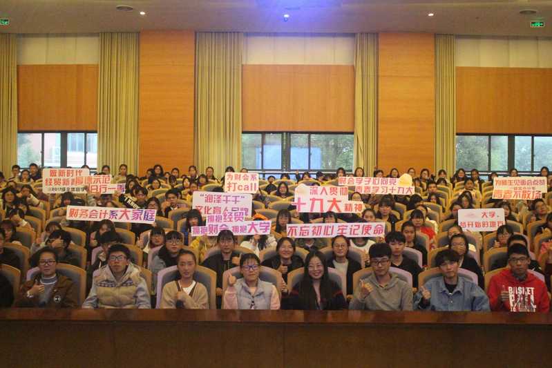 此次师生见面会还精心设计了为学霸颁奖、学生才艺展示、专业挑战赛、新生大数据分享等环节。理论的学习、实践的引领、生动的形式、活泼的表达,伴随着全场高举的“财务学子心向党 青春学习十九大”、“做新时代经贸新青年@财务会计系”等标语,见面会在全系师生的共同点赞中圆满结束。