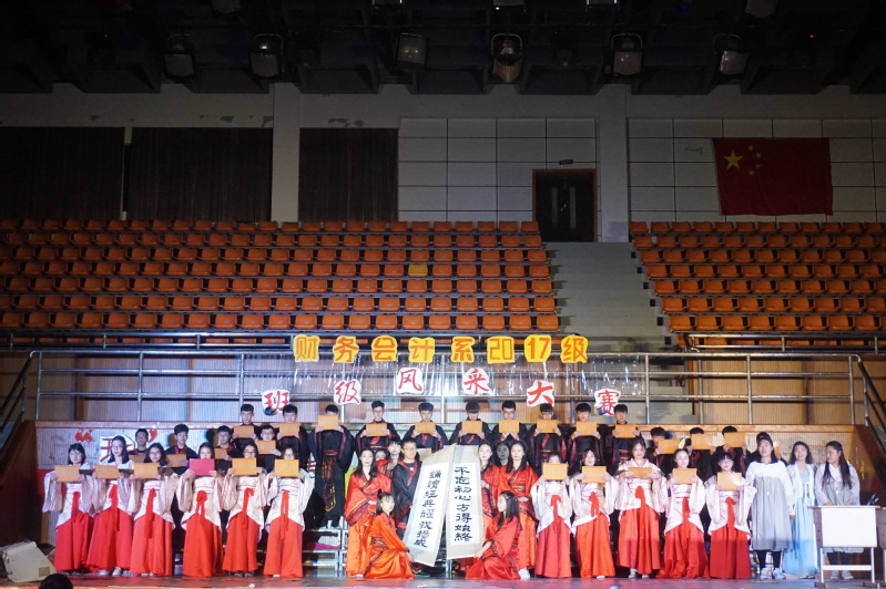 2017年12月21日晚上6点15分,财务会计系在体育馆组织““班”斓青春 “级”聚你我”第五届班级风采大赛,财务会计系辅导员老师等担任此次大赛的评委,大一各班班主任老师以及财务会计系团学干部也来到了现场,全体大一新生参加。