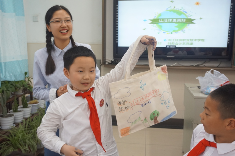 在这第49个世界地球日主题宣传周里,财务会计系学生党支部和小学生们一起相约最美四月天,通过开班会、画标志、绘手袋的形式,一起表达对干净水源、清新空气、绿色森林的向往之情。活动在加强世界地球日宣传的同时,也意在呼吁更多人参与到关爱地球的活动中来。