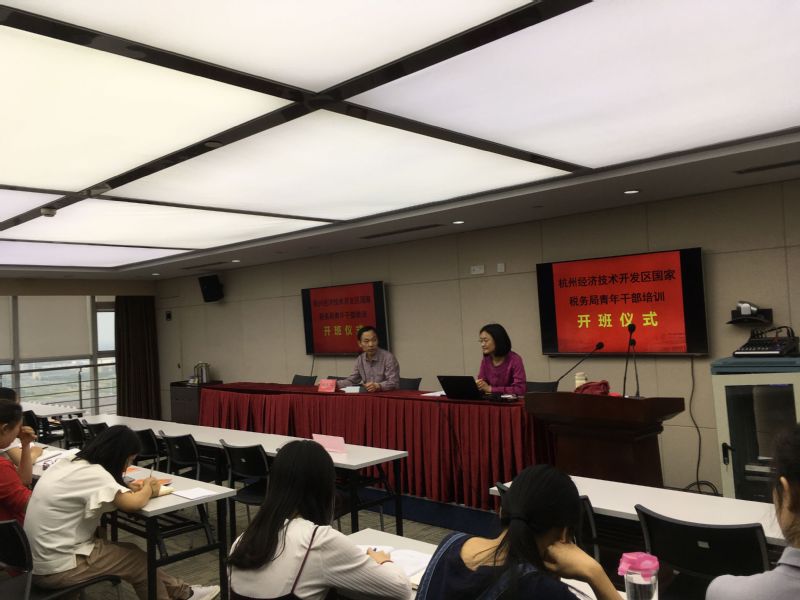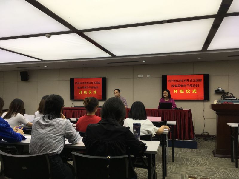 2018年5月10日,杭州市经济技术开发区国税局青年干部培训开班仪式在和茂大厦举行,这是开发区国税局为迎接国地税合并新形势的一项人才培养举措。开发区国税局将此培训项目委托我院财务会计系承担。开班仪式上,开发区国税局党组成员、副局长姚光军同志对我系师生长期以来支持开发区税务局给予了高度的赞扬。认为我院会计专业和税务专业在师资、教学水平、教学环境等各方面都非常出色,培养的学生实务能力非常强。