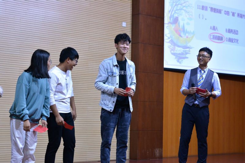 见面会还特别邀请了最受学生喜爱的“3+2”人才培养合作学校老师代表上台发言,安排了欢迎省外同学、为高考分数位列第一的同学们颁发“学霸奖杯”、新生才艺展示以及“经贸战狼小队”表演等环节。此外,在精心设置的安全知识、《学生手册》知识竞答部分,同学们可以通过“拨打辅导员热线电话猜歌名”、“抢红包”和“大转盘”的形式抢答,答对的能抽取“获得系党总支副书记朱颖老师亲手绘制的国画一幅”、“与辅导员共进午餐”等丰厚的奖品,活泼有趣的形式吸引了全场的热情参与。