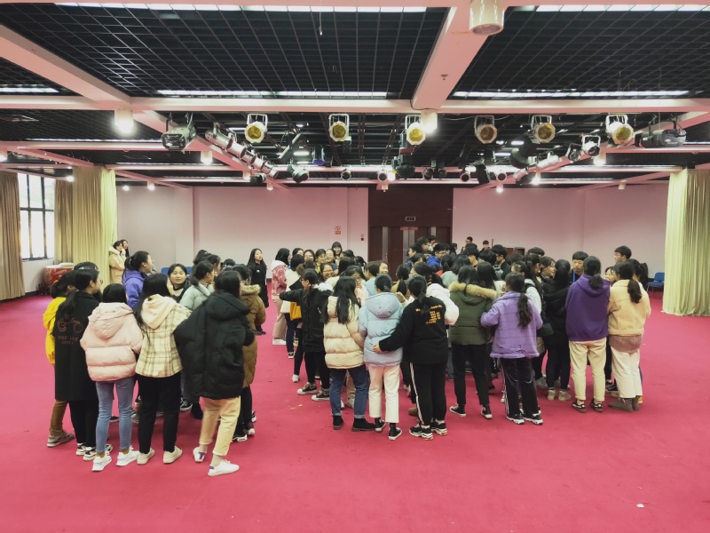 第四项是“抱团游戏”,各寝室四名同学全部参与其中,由主持人报数字,大家根据数字对应的人数与周围抱成一团,每轮“落单”同学则淘汰出局。