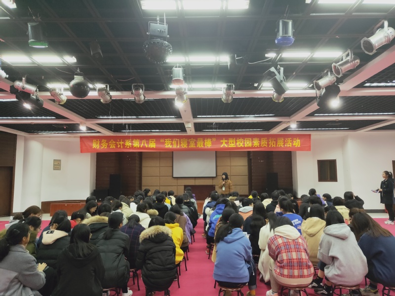 12月23日下午,财务会计系在学生活动中心一楼开展第八届“我们寝室最棒”大型校园素质拓展活动,来自我系大一的21个寝室参加了此次活动。