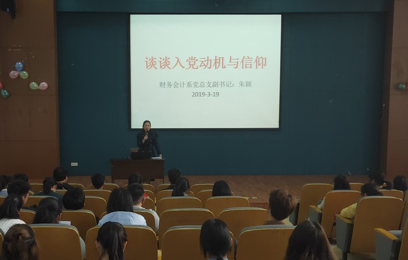 3月19日下午,财务会计系党总支副书记朱颖老师和系学生党支部书记严晓莉老师在图书馆报告厅为全体学员上了两节生动的党课。