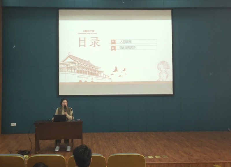 朱颖老师以“谈谈入党的动机与信仰”为主题,首先强调,“入党动机”是每位想入党的同学必须要思考和回答的问题。紧接着,朱老师为大家讲解了“什么是信仰”,并以章宗祥、汪精卫两个反面的例子以及“悲惨三部曲”的现象,用生动的语言深入浅出地说明了“信仰”的重要意义。之后,朱老师结合丰富贴切的事例阐释了中国人“家国心中有,河川有情怀”、“祈愿天下和,信义天下知 ”、“敬天也敬地,勤劳也抗争”“百家虽久远,精华世代传”等四方面的信仰。最后指出,中国共产党的信仰是“为中华民族谋复兴,为中国人民谋幸福”,一切都是为了这个信仰而奋斗的。接着,严晓莉老师为同学们细致地讲解了入党的流程,并在与同学的互动中从党的性质、党的宗旨、党的纲领和党的指导思想这四个方面来讲党的基础理论知识,使学员们们温故而知新。