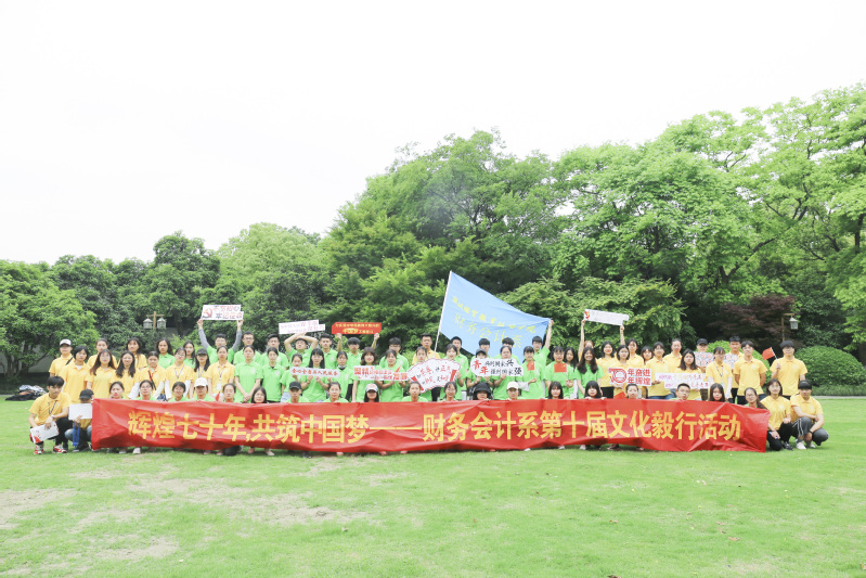 为弘扬爱国情怀,展现新时代经贸青年的良好风貌,2019年4月27日,财务会计系组织80余位师生绕西湖开展“辉煌70年,共筑中国梦”第十届文化毅行活动。