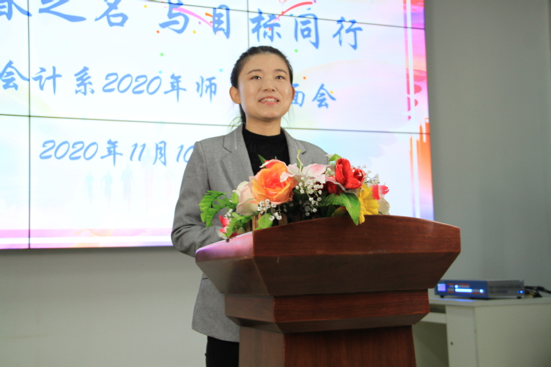 系团总支书记周草作为主持人拉开见面会的帷幕。活动伊始,财会系20级各班的班级宣言便深入人心,各班都喊出了“过级”、“考证”等明确的班级目标。老生代表,连续两年获得国家奖学金的税务181班的赵李婷跟大家分享了她在大学期间的学习、工作经历。投理202班的芦思瑜通过网络票选成为了新生发言的代表,她在发言中向大家讲述了自己的专业初体验和大学奋斗目标。