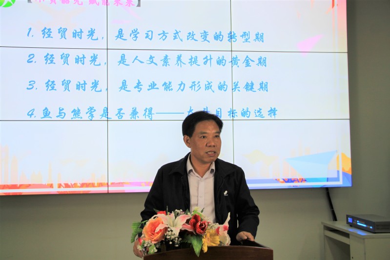 潘上永书记在见面会上为广大新生上了生动的一课。他讲到,我们生活在充满了未知和不确定性的“VUCA时代”,我们要努力让自己变强大,坚定自身,不被时代洪流所吞没。对于学生来说,经贸时光是学习方式改变的转型期,是人文素养提升的黄金期,更是专业能力形成的关键期。他用“鱼和熊掌”是否可以兼得的故事向学生阐述了应该如何恰当地选择奋斗目标。