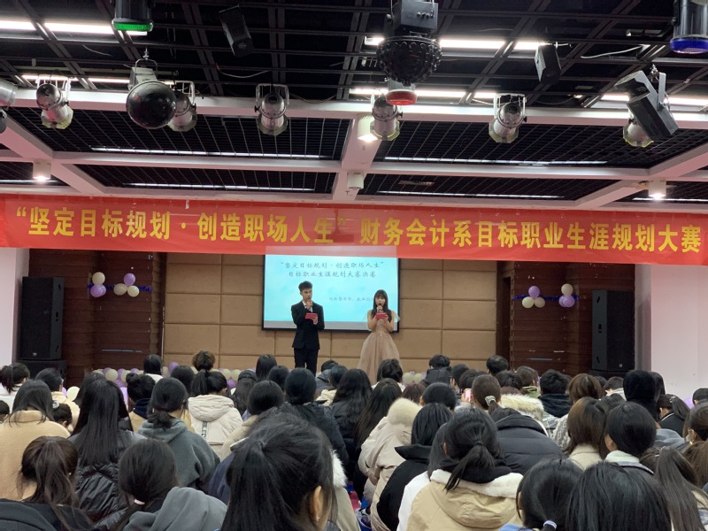 12月16日,财务会计系纪检督察部和就业创业部在学生活动中心一楼联合举办“决定目标规划·创造职场人生”——职业生涯规划大赛决赛。系辅导员张刚、严晓莉出席并担任评委,大一部分学生参加。