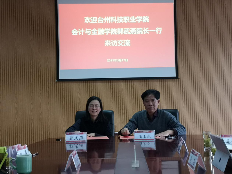 3月17日,财会系领导班子在系会议席接待了台州科技职业学院会计与金融学院郭武燕院长一行,会计专业带头人、辅导员及教学秘书出席了交流会。