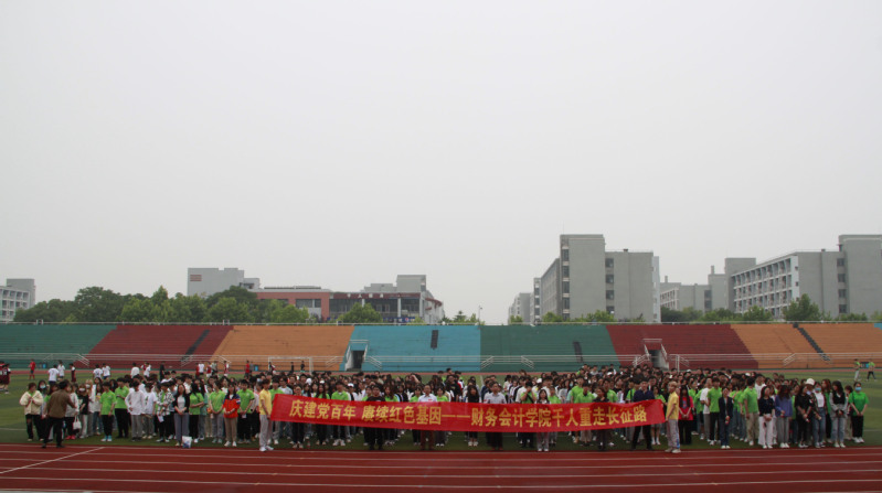 为庆祝中国共产党成立100周年,5月18日下午,财务会计学院千人重走长征路文化毅行活动在学校田径场拉开帷幕,学院教师以支部、学生以班级为单位参加本次活动。
