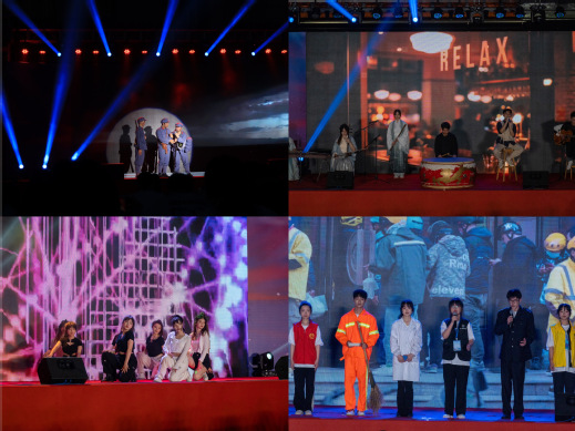 在“青春如光”篇章,无伴奏阿卡贝拉表演《稻香》形式新颖,给观众带来独特的视听感受;《少年中国说》结合手语、朗诵、歌曲表演,展现了青年学生意气风发的向上面貌;街舞表演《Love shot》活力动感,引发全场观众的尖叫;蓝藻乐队演唱的《海阔天空》充满力量感,诠释了青年学子不畏艰难、勇敢逐梦的初心。