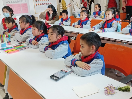 在第60个学雷锋纪念日到来之际,浙江经贸职业技术学院财务会计学院的大学生志愿者们来到杭州白杨街道云滨社区,携手文清小学的小朋友一起讲雷锋故事、做雷锋书签、学雷锋精神。