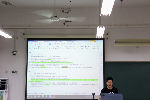 活动伊始,蔡张文韬为同学们发放相关的电子备考资料,他结合自身的考试经验,围绕考试流程、考试题型、科目安排、答题技巧等方面介绍了如何进行计算机等级考试备考。他针对考试中的典型题目,结合具体例题,为大家进行细致入微的讲解。蔡张文韬的细心讲解为同学们扫清了知识盲区,弥补了知识漏洞,明确了复习方向。